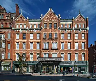 The building was renovated in 1986 into an office building[5] by Walter Uccellini Enterprises (now Historic Redevelopment Associates).[7] After the renovation there was a total of 87,475 square feet (8,126.7 m2) of rentable space.[8] The major tenant, from 1986 until 1999, was the Healthcare Association of New York State, which occupied 62,000 square feet (5,800 m2) on four of the six floors of the building.[9] The first major event held in the building after renovation was the 13th annual conference of the Preservation League of New York State, on April 18, 1986.[7] In May 2008 a new nightclub was proposed for the Kenmore. The nightclub, called The Terrace Lounge at The Kenmore, was to be on the ground floor and not in the two story former Rain-bo Room.[10][11] The Kenmore Hotel building was listed for sale in 2016.[12]