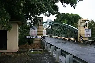 The Kennedy Bridge is a single span metal truss road bridge crossing Bundaberg Creek (also called Saltwater Creek), a tributary of the Burnett River, at Bundaberg. It was constructed in 1899 and was the smaller of two technically and visually related bridges designed by A.B. Brady for Bundaberg.[1]