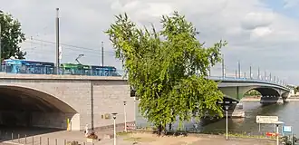 The Kennedy Bridge (German: Kennedybrücke) is the middle of Bonn's three Rhine bridges (North, Kennedy, and South Bridge), connecting the city center of Bonn on the left side with the town center of Beuel (which was incorporated into Bonn in 1969) on the right side. The second reconstruction, which began in 2007, was finished in July 2011.