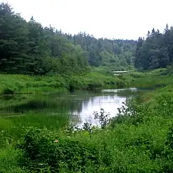 The Kennetcook River is a river that flows through Hants County, Nova Scotia. From headwaters near the mouth of the Shubenacadie River, the Kennetcook traverses about 45 kilometres of mostly rural terrain, discharging into the Avon River at Windsor. The Kennetcook cuts through fossiliferous limestone rocks for part of its length.[2] A tidal river near its mouth, the Kennetcook experiences a tidal bore which may be seen at Scotch Village.[3] It is a known salmon river popular with anglers.