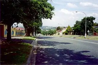 Prior to the discovery of gold on the Witwatersrand in 1886, the suburb lay on land of one of the original farms called Doornfontein.[3] Kensington is laid out over the slopes of several koppies (flat-topped, high-sided hills). The streets were laid out in 1903, with the suburb named by the owner of the land, Max Langermann. All of the streets coming off Langermann Drive are in alphabetical order and are named after British war ships.