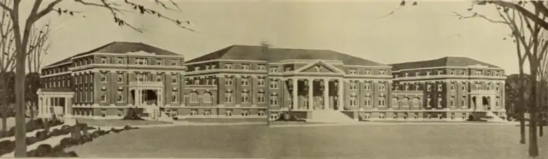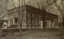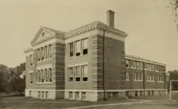 Caldwell College was located in Danville, Kentucky on the site of today's Danville High School.[2][10] Its main building was West Hall.[10] The campus also included a small chapel designed by architect J. R. Carrigan in 1882.[10][11] In 1882, the college could accommodate forty boarding students.[6] A gymnasium was added in 1911.[12] It included a basketaball court, a bowling alley, and a swimming pool.[8] The campus was expanded to include East Hall which included dormitory rooms and a dining hall.[13][14][8] Morgan Hall was added around 1914; it house the college's library.[8][15] The campus also featured an aesthetic garden.[16]