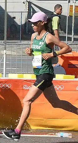 She represented Algeria at the 2008 and 2009 IAAF World Cross Country Championships, placing 59th and 32nd respectively.[3] She set a personal best in the marathon with a run of 2:39:38 hours for third at the Madrid Marathon.[5] The 2009 Mediterranean Games provided her with more regional medals, as she claimed the bronze in both the 10,000 metres and the half marathon events. She was the Arab Half Marathon champion and also won at the Marathon de Toulouse Métropole. She competed sparingly in 2010 to 2012, with her foremost result being fourth place at the Arab Half Marathon Championships.[4]