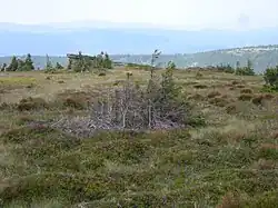 The Šerák-Keprník National Nature Reserve is located at elevations ranging from 1,300 to 1,423 m above sea level, covering an area of 794.30 ha (1,962.8 acres) (with a protective buffer zone of up to 1,169.83 ha).[32] Established on 31 December 1933, the reserve protects a series of preserved rock and soil formations formed during the harsh climate of the Ice age, such as cryoplanation terraces, frost ribs, and hummockss,[28] along with the flora and fauna found within these areas.[32] The reserve is open to tourists, with both hiking and cycling trails as well as an educational path running through it.[1]