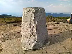 Approximately 995 m north of the summit, close to the red tourist trail (about 30 m away), at an elevation of 1,309 m above sea level,[1] there is a monument with a stone commemorative plaque, erected on 26 September 1935.[10] It features the image of the Silesian writer and mountain enthusiast Hermann Löns, along with the following inscription:[10]