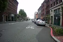 Red painted kerbs (at right) in a Seattle street