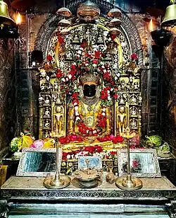 The temple is considered an important pilgrimage center by both Digambara and Śvētāmbara sect of Jainism and Hindus.[1][3][12] The mulnayak of the temple is a 1.05 metres (3 ft 5 in) black stone idol of Rishabhanatha, revered by both Vaishnavas and Jains.[5][2] Kesariyaji is the name of Rishabhanatha idol inside the temple. The name is derived from the instance of a man of offering kesar (transl. saffron[13]) equal to his son's weight when his wish of having a child is fulfilled.[14] According to another legend, a Brahmin once threw a coin at idol saying "if you have any strength you will show it me", the coin flew back hit Brahmin head.[15]