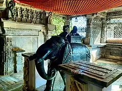 In front the principal shrine there is an idol of Marudevi, mother of Rishabhanatha, seated on an elephant corroborating the belief of Marudevi attaining omniscience and moksha while seated on an elephant as per the Śvetāmbara tradition.[6][21] No such story exists in the Digambara tradition.