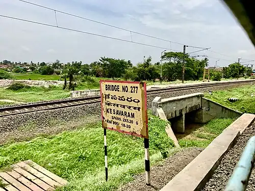 Kesavaram is an Indian Railways station in Kesavaram, a village in Dr. B. R. Ambedkar Konaseema district of Andhra Pradesh. It lies on the Vijayawada–Chennai section and is administered under Vijayawada railway division of South Coast Railway zone. Five trains halt in this station every day. It is the 3520th-busiest station in the country.[2]
