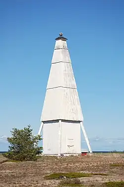 The Keskiniemi beacon tower (Keskiniemen tunnusmajakka in Finnish), often referred to as the Karvo beacon tower, is a historic daymark located on a promontory of Keskiniemi in the northwestern part of Hailuoto island in the Gulf of Bothnia in Finland. The tower was built in 1858 to alert the vessels about sandbars reaching northwest from the site. It is the oldest surviving navigational aid on Hailuoto island.[1] The tower has structural similarities with the Härkmeri beacon tower built in 1857.[2]