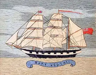 The Kestrel was a British barque that was built in 1871 with coal-fueled steam engines and three masts. She spent her career carrying goods across the Atlantic. On 11 February 1895 she was anchored at Santos, near São Paulo, Brazil, when she was caught in a tropical storm. Her anchor chain broke, and she was driven aground on to Boqueirao Beach. All but three crewmen were ashore when the ship was grounded, including Captain Cochrane. The remains of the ship were rediscovered in 2017 after they were uncovered by a storm.