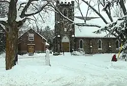 Kettleby was established no later than 1825, when Jacob Tool of Pennsylvania purchased 100 acres (0.40 km2) in a wide ravine, including a stream.[1] He built a sawmill powered by the stream's flow, but little other development occurred in the area. It was the industrious Septimus Tyrwhitt, who purchased 46 acres (190,000 m2) of Tool's property in 1842, that spurred development of more mills and the eventual settlement of Kettleby.[1] Early settlers often referred to it as Tyrwhitt's Mills, in honour of Tyrwhitt. However, he disapproved of the name, and his wife subsequently named the hamlet Kettleby, after the Tyrwhitt family ancestral home in Lincolnshire, England. That the name Kettle Bee derived from the construction bee of raising Tyrwhitt's mill, which drew many men from surrounding villages, is a local urban legend.[1] Tyrwhitt was named reeve of King Township in 1852.[2]