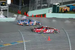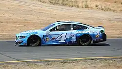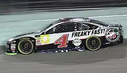 Harvick raced in the K&N Pro Series West event at Sonoma Raceway, his first race in the series since Iowa Speedway in 2007, driving the No. 4 for Jefferson Pitts Racing.[28] Harvick took the lead from Michael Self on lap 42 to win the race.[29] A day later, he won the Toyota/Save Mart 350 to sweep the weekend, his second-ever road course win, and first at Sonoma. Teammate Clint Bowyer finished second to mark a Stewart-Haas 1–2.[30] During the chase, Harvick struggled during the first round finishing 36th at Loudon and seventeenth at Dover. Though his playoff points and stage points saved him from elimination. The second round fared slightly better for Harvick though he did suffer a DNF at Talladega, again his stage points would keep him from elimination. Harvick finished fifth at Martinsville after sliding to the finish after last-lap contact. The following week at Texas, Harvick would win stage 1, lead a total of 35 laps, and win the race. Harvick's win would secure him a spot in the Championship 4 at Homestead. The win was also Harvick's first at Texas, leaving Kentucky and Pocono as the only tracks Harvick has yet to win. The following week at Phoenix, Harvick finished fifth. This marked the first season since 2011 where Harvick didn't win a race at Phoenix. In the season finale at Homestead, Harvick started strong, leading the championship at one point, however, after hitting some debris and losing the handle of the car, Harvick was unable to run with the leaders Truex and Busch during the final green-flag run. He finished fourth in the race and third in the final standings. With the retirements of Dale Jr. and Matt Kenseth, Harvick and his long-time rival Jimmie Johnson became the oldest full-time drivers in the Cup Series.
