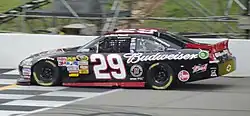 With the departure of Royal Dutch Shell at the end of 2010, the No. 29 teams were searching for a new sponsor. In August 2010, it was announced that for 2011, the car's primary sponsor would be with Budweiser for twenty races.[18] Adding to Harvick's new sponsorship, on January 25, 2011, Jimmy John's and Richard Childress Racing reached a multi-year agreement to sponsor the No. 29 Sprint Cup team for six races in 2011. Harvick won his fifteenth career Cup race at Auto Club Speedway after passing defending series champion, Jimmie Johnson in the final turn in a finish resembling the previous race in 2010. As a joke to Harvick's words in 2010, Johnson asked Harvick in post-race ceremonies if "I can have my golden horseshoe back." Harvick took his second consecutive win of the year at Martinsville Speedway. Harvick then won the Coca-Cola 600 after Earnhardt Jr. ran out of fuel in the last turn on Lap 402.[19] He would then later win at Richmond, narrowly beating Jeff Gordon due to a late-race pit stop that shuffled Harvick to the lead.