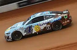 Harvick began the 2022 season with a 30th-place finish at the 2022 Daytona 500. Aside from four DNFs, he stayed consistent with his finishes until he won at Michigan, breaking a 65-race drought to become the fifteenth different winner in the season.[52] Harvick then scored his sixtieth, and final, career victory at Richmond a week later.[53] At the Southern 500, Harvick finished 33rd after his car caught fire, which resulted in being relegated to 16th and last in the Playoff standings.[54] The following week at Kansas, Harvick slammed the wall on lap 33 after Ross Chastain made contact with Bubba Wallace, resulting in Harvick's third consecutive DNF for the first time in his career. Harvick was eliminated in the Round of 16 after finishing tenth and being in a must-win situation at the Bristol night race.[55] On October 5, Childers was suspended for four races and fined US$100,000 for an L2 Penalty during post-race inspection after the Talladega playoff race. The penalty came under Sections 14.1 (vehicle assembly) and 14.5 (body) in the NASCAR Rule Book, both of which pertain to the body and overall vehicle assembly rules surrounding modification of a single-source supplied part. In addition, the No. 4 team was docked one-hundred driver and owner points.[56] Harvick finished the season 15th in the points standings, his first points finish outside the top 10 since 2009.[57]