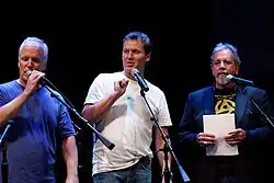 Murphy also did not appear in a 2008 reunion sketch, which otherwise featured all of the original cast members from the Comedy Central era reprising their roles (excluding Weinstein).[4] In 2016, Hodgson participated in the RiffTrax Live: MST3K Reunion event, performing as a guest riffer alongside Murphy, Nelson and Corbett. Trace Beaulieu, Frank Coniff and Jonah Ray also performed.
