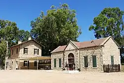 A train station in Kfar Yehoshua operated for close to fifty years on the Jezreel Valley Railway, from the beginning of the 20th century to 1948. Seven stone buildings from this period have been restored by the Society for Preservation of Israel Heritage Sites, and original railroad tracks have been returned to the site.[15]
