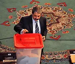 He has served on the board of trustees of the Ligue Tunisienne des Droits de l'Homme since 1988.[2] He is a founding member of the Ettakatol political party, and a member of the Tunisian General Labour Union.[2][3][4] He is a former advisor of Mustapha Ben Jafar.[4]