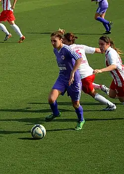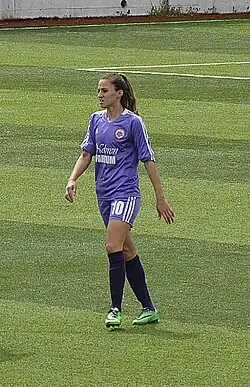 She joined the Turkish club Trabzonspor July 16, 2009 right before the qualification matches of the 2009–10 UEFA Women's Champions League. She scored a goal in her first match in the tournament against the Slovene team ŽNK Krka.[5] She participated also in the two following matches.[6][7] After playing one season and scoring nine goals in 17 league matches, she transferred the rival team Trabzon İdmanocağı in the same city. She played three seasons capping 51 times and netting 34 goals. For the 2012–13 season, she moved to another Black Sea club, Kdz. Ereğlispor, where she continues to play.[1] She transferred to the Istanbul-based club Ataşehr Belediyespor in the second half of the 2016–17 season.[1]