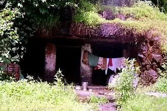 The group of caves comprises a large vihara, with three cells for monks, and with a stupa in the back located in an oblong room.[1] There are also four smaller caves in the group.[1] The caves are in a rather derelict state.