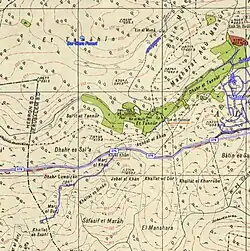 Ein Tanur ("Oven Spring") is a spring north east of the village site, enhanced by an ancient tunnel dug deeply to catch the water at the source and increase its flow.[4] The name was in the 19th century Ain Bint Nûh, or the spring of Noah’s daughter.[5][6]