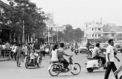 While Sihanouk was out of the country on a trip to France, anti-Vietnamese rioting took place in Phnom Penh, during which the North Vietnamese and NLF embassies were sacked.[9] It seems likely that this rioting was at least tolerated, and possibly actively organised, by Lon Nol, the Prime Minister, and his deputy Prince Sirik Matak. On 12 March, the prime minister closed the port of Sihanoukville – through which weapons were being smuggled to the NLF – to the North Vietnamese and issued an impossible ultimatum to them. All PAVN/NLF forces were to withdraw from Cambodian soil within 72 hours (on 15 March) or face military action.[10]