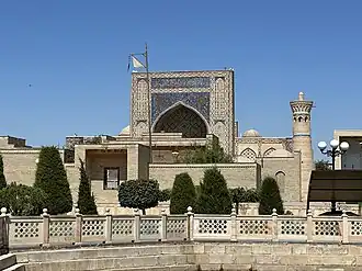 Khoja Abdulkhalik Gijduvani Complex is an architectural monument (12th–15th centuries[1]) in the city of Gijduvan, Bukhara Region. The complex is located 50 km from the city of Bukhara and was built by Abdukholiq ibn Abdujalil Gijduvani, the founder of the Khojagan sect.[2] The complex consists of the mausoleum of Khoja Abdulkhaliq Gijduvani, the Ulugbek Madrasah, a mosque and a pool. Khoja Abdulkhaliq Gijduvani is the first representative of seven pirs in Bukhara. He became known as Khojai Jahan and founded the school of Sufism. In 1433, Timurid Mirza Ulugbek built a madrasa in front of the shrine of Khoja Abdulkhaliq Gijduvani. In 2003, the 900th anniversary of Khoja Abdulkhaliq Gijduvani was widely celebrated.[2] The Ulugbek madrasah in the complex was distinguished by its appearance. A mosque was built in this complex during the reign of Shaibani Ubaydullah Khan of Bukhara (1539–1550). In 1583, the madrasa and mosque were renovated during the reign of Bukhara Khan Abdullah Khan II (1583–1598). Verses 1–7 of Surah Alaq were mentioned on the facade of the Mirzo Ulugbek madrasah.[3] These notes were written in suls script. However, most of them have collapsed. In 1946, certain part of the Mirzo Ulugbek madrasa records were read and accordingly it was restored.[4] The tombstone of Abdukholiq Gijduvani was made of stone and the eleventh verse of Surah "Mujodala" from the Quran was written on the sides. On the short sides of the tombstone, an epitaph (inscription devoted to that person) was written.[5] The mosque in the complex of Khoja Abdulkhaliq Gijduvani was rebuilt in 2003.[6] Nowadays, all the conditions for pilgrims have been created in the complex of Khoja Abdulkhaliq Gijduvani.