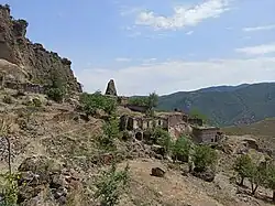 Khot was first mentioned as a town within the Haband gavar (county) of the Syunik province during the time of the Kingdom of Armenia. In the 11th century, it was mentioned by the Armenian historian Stepanos Orbelian as a tax-paying settlement under the jurisdiction of the Tatev monastery.[4] In 1205, prince Dlen, the son of Khazbak, donated the village of Khot and the large garden of Khotaget to the Tatev monastery. However, it was later taken away from Tatev until 1274, when the prince Tarsayich Orbelian returned it to the monastery.[6] In the medieval period, the castle of Khanapa was located here and the ruins can still be seen today. The oldest monastery of the village was Khoti Vank built in the 5th-6th centuries.[7][8] The Armenian priest and historian Ghevond Alishan referred to it as St. Astvatsatsin. The ruins of the Red Church of the village from the 12th century are preserved in the old cemetery. Traditionally, the bells of this church were known for their powerful sound which is where the name Zangezur, from Armenian zang (bell), is believed to have originated. In the 18th century, the Mrgadzori Khach church was built in the village. According to legend, Mrgadzori Khach was built by an Armenian woman who escaped the harem of the Persian Shah Abbas.[6] By the 19th century, Russian general Yermolov mentions Khot as an Armenian village in the province of Karabakh, conquered from Qajar Iran during the Russo-Persian War (1804–1813).[9]