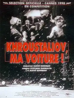 Khrustalyov, My Car! (Russian: Хрусталёв, машину!, romanized: Khrustalyov, mashinu!) is a 1998 Russian comedy-drama film directed by Aleksei German and written by German and Svetlana Karmalita. It was produced by Canal+, CNC, Goskino, Lenfilm and VGTRK.