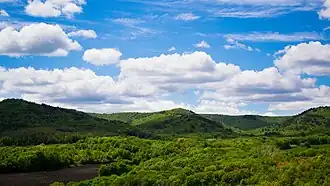 The highest point of Saratov Oblast, reaching 369 metres (1,211 ft), as well as the highest point of Penza Oblast, reaching 342 metres (1,122 ft) above sea level, are located in the Khvalinsk Hills. Both summits are unnamed.[4] There are also white chalk hills among pine forests that are a tourist attraction.[5]