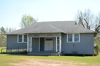 The Kiblah School is a historic school building in rural Miller County, Arkansas. It is located southeast of Doddridge, at the junction of County Roads 4 and 192, between United States Route 71 and the Red River. The building is a single-story L-shaped wood-frame structure, topped by a gable-on-hip roof. It has modest Craftsman styling, with some Greek Revival influences. The main entrance is sheltered by a hip-roofed porch supported by Craftsman-style columns. It has a transom window reminiscent of Greek Revival doorways. The school was built in 1927 with funding from the Rosenwald Fund (although it was not built to a standard Rosenwald plan), and was intended to serve the African-American community of Kiblah, which was established after the American Civil War by former slaves from a Louisiana plantation.[2]