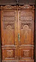The architect of the mosque was the skilled craftsman Rahim and his father.[2] During the construction of the mosque, a minaret, known as Guldeste, was also built nearby.[3] The walls of the mosque are 26 m (85 ft) long, 10 m (33 ft) wide, 8 m (26 ft) high, and 1 m (3 ft 3 in) thick.[8] The mosque can accommodate up to 250 worshippers simultaneously.[9] Red bricks, local wood materials, and tiles were used in the construction of the mosque. The left door of the mosque was prepared by Mahammadhasan Naccar, a member of the "Fovcul-fusaha" literary circle active in Lankaran in the 19th century, while the right door was prepared by the master craftsman Mahammadali.[3][10]
