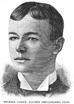 Wilfred "Kid" Carsey (October 22, 1870 – March 29, 1960), was an American professional baseball player who was a pitcher in the Major Leagues from 1891 to 1901. He played for the Washington Statesmen, Philadelphia Phillies, St. Louis Cardinals, Washington Senators, New York Giants and Brooklyn Superbas. Carsey's pitching style was known mostly for his slow curveball and unconventional delivery, which involved snapping his wrist with little arm motion.[1][2]