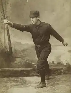 In New York, Gleason played five seasons as the regular second baseman, hitting a respectable .271 overall but with little power.[3] He served as a team captain, and in that capacity may have invented the intentional walk during an 1897 game by advising his pitcher to walk a strong hitter to face a weaker one.[1] Gleason also earned local fame on April 26, 1900, for helping New York firemen rescue residents from an apartment fire.[1]