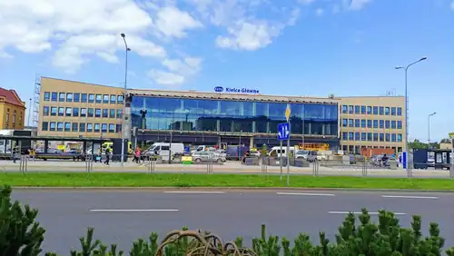 In the vicinity of the train station (exactly on Żelazna Street), there are 3 stops served by a total of 14 bus lines (0Z, 5, 13, 33, 34, 44, 45, 46, 50, 51, 54, 114, N1, N2).[8] The Kielce Bus Station is located near the train station, which was put into use again in 2020 after reconstruction.[9]