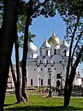 Modern scholars find this an unlikely series of events, probably made up by the 12th-century Orthodox priests who authored the Chronicle as an explanation how the Vikings managed to conquer the lands along the Varangian route so easily, as well as to support the legitimacy of the Rurikid dynasty.[64] The three brothers—Rurik, Sineus and Truvor—supposedly established themselves in Novgorod, Beloozero and Izborsk, respectively.[65] Two of the brothers died, and Rurik became the sole ruler of the territory and progenitor of the Rurik dynasty.[66] A short time later, two of Rurik's men, Askold and Dir, asked him for permission to go to Tsargrad (Constantinople). On their way south, they came upon "a small city on a hill", Kiev, which was a tributary of the Khazars at the time, stayed there and "established their dominion over the country of the Polyanians."[67][63][64]