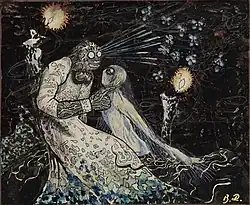 Kikimora[a] is a legendary creature, a female house spirit in Slavic mythology.[1][2] Her role in the house is usually juxtaposed with that of the domovoy.[1] The kikimora can either be a "bad" or a "good" spirit, which will depend on the behavior of the homeowner.[3] In more recent times, an image of kikimora as a female swamp spirit had developed.