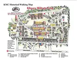 Kīlauea Military Camp (KMC) is operated as a Morale, Welfare and Recreation (MWR) facility on Hawai‘i Island, also known as the Big Island, in Hawaiʻi. It is located inside Hawaiʻi Volcanoes National Park. This United States Department of Defense (DoD) facility is at an elevation of 4,000 feet, within walking distance from Kilauea Volcano, the world's most active volcano.