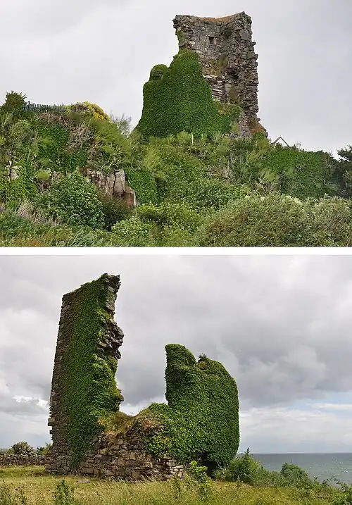 It was built in the 13th century by the MacDonalds, the Lords of the Isles. The castle stands on the cliffs, overlooking the island of Pladda and the entrance to the Firth of Clyde. It was built to defend against enemies attacking through the Firth.