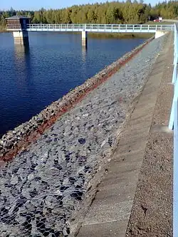 The reservoir has a rockfill dam with a watertight clay core that sits on a shale bedrock.