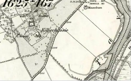 The Killiechassie Estate has existed for centuries, and historically fell within the civil parish of Logierait.[5] The name Killiechassie is from Scottish Gaelic Cill Chasaidh, "the church of the steep face," which refers to a church which stood on the hill there.[6] This was part of the earldom of Atholl and was then granted by Máel Coluim, Earl of Atholl, to Scone Abbey in the 12th century.[6]