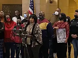 On February 2, local civil rights activists held a vigil and asked police and city leaders for more information, including who authorized the SWAT team.[45] On February 4, during a press conference by Interim Chief Amelia Huffman and Mayor Jacob Frey after the body camera footage was released, reporters and community members, including civil rights attorney Nekima Levy Armstrong, challenged Huffman about her initial description of the body camera footage.[22][8][20] Huffman had initially stated officers "loudly and repeatedly announced police search warrant before crossing the threshold into the apartment" and then later encouraged people to "make their own assessment" after the footage was released.[20]