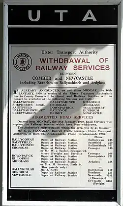 - ^ "Belfast & County Down Railway". Downpatrick & County Down Railway. Retrieved 11 March 2025.