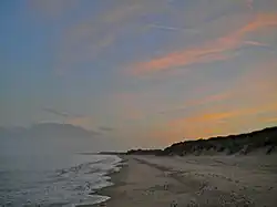 Morriscastle Beach at sunset, looking south towards Tinnaberna and Wexford town., 4 September 2012