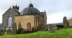 Kilmun Parish Church and Argyll Mausoleum in Kilmun, Argyll and Bute, Scotland,[1] consists of St Munn's Church (a Category-A-listed building but no longer a parish church of the Church of Scotland), as well as the adjacent mausoleum of the Dukes of Argyll and a historically significant churchyard. The complex is located on the summit of a slight knoll about ten metres from the shoreline of the Holy Loch on the Cowal Peninsula in Argyll, Scotland. The existing church dates from 1841[2] and occupies the site of an older, medieval church. A partly ruined tower from the medieval period still stands to the west of the present building.[3]