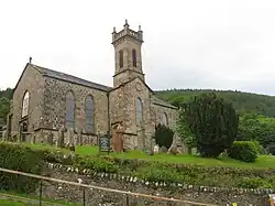 Most of St Munn's Parish Church as it appears today dates from the 19th century, although the old, ruined tower located to the west of the present building (now a scheduled monument) belongs to a much older foundation.[4]