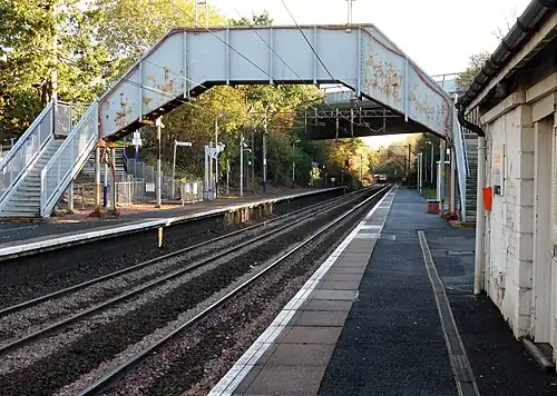 ![]() Kilpatrick railway station, looking southeast towards Dalmuir. The Erskine Bridge can be seen overhead. | |||||