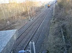 The station closed to passengers on 1 February 1960[1] and to goods on 6 July 1964. Most of the station was demolished, but part of the goods platform to the west of the A5 still survives.