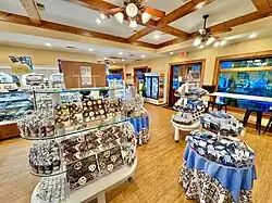 The company is best known for chocolates, fudge, and ice cream, but also makes other sweets including barks, brittles, candies, clusters, taffy, truffles, and chocolate-covered pretzels, Oreos, and Rice Krispies.[15][16] The stores allow customers to watch staff produce the confectioneries.[17][18] The company uses marble tables, which cools the fudge from the bottom.[19] Ice cream is produced at the company's main facility in Petoskey.[10][20] Kilwin's has been described by some as 'old fashioned sweets'.[21] In 2018, Kilwins was one of the food vendors for Lollapalooza.[22]