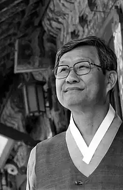 Kim was born in Seoul and studied German language and literature at Seoul National University. Early in his university career, he participated in the demonstrations of the April Revolution that was repressed by a massacre on April 19, 1960, leading to the fall of President Syngman Rhee. He later studied for two years in Munich 1972-4. He discovered a talent for writing during his middle and high school years when his works were published in school magazines and even won a national prize. However, he did not begin writing poetry until his return from Germany in his mid-thirties. He has been working as a professor in the German department of Hanyang University (Seoul) since 1980. He has published translations of 19th century German poems (1980), of poems by Bertolt Brecht (1985), of radio dramas by Günter Eich (1986), and of poems by Günter Eich (1987).[2]